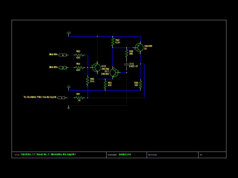 - modmix.sch Circuit No. 15, Board No. 3, Modulation Mix Amplifier